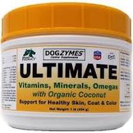 Dogzymes Ultimate combines vitamins, minerals and omegas that support healthy skin, coat and color. Organic Coconut and Parmesan Cheese enhance flavor and support nutritional value.